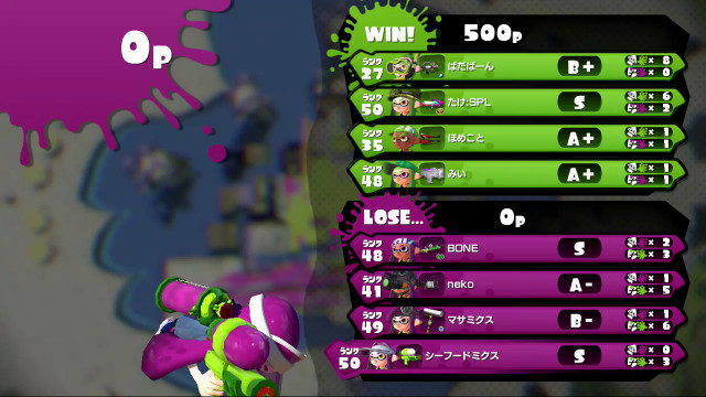 | Splattershot Jr. | 48 | A+ | 1 / 1 = | 1.00 | 50.0% | |