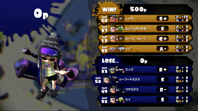 | Wasabi Splattershot | 37 | S | 3 / 3 = | 1.00 | 50.0% | |