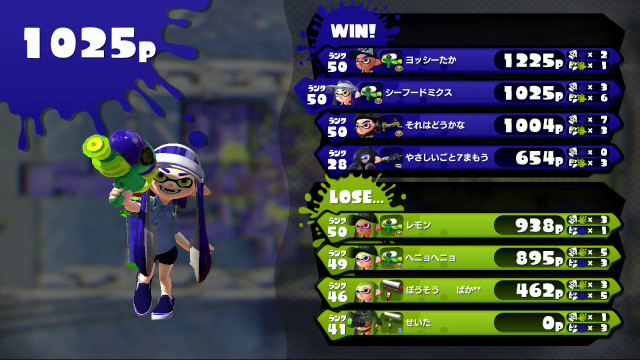 | Special Save | 55.2 % loss (Wasabi Splattershot) | |||||||||||||||||||||||||||||||||||||||||||||||||||||||||||||