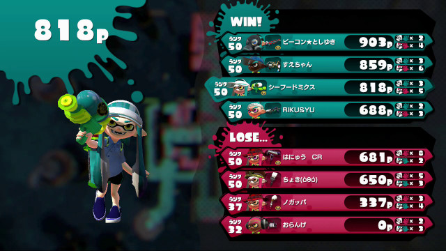 | Special Save | 55.2 % loss (Wasabi Splattershot) | |||||||||||||||||||||||||||||||||||||||||||||||||||||||||||||