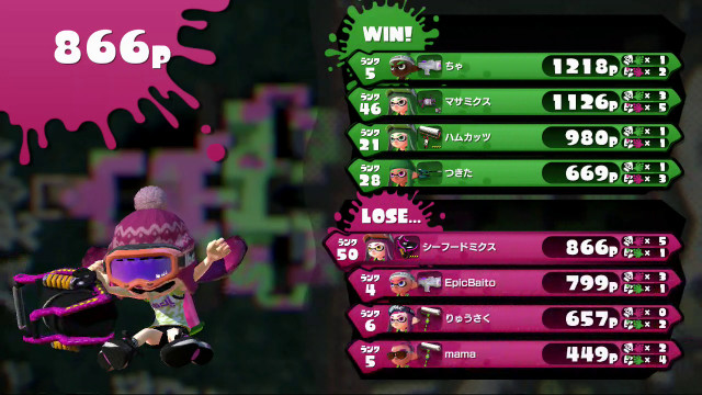 | Splattershot Jr. | 4 | 799 | 3 / 1 > | 3.00 | 75.0% | |