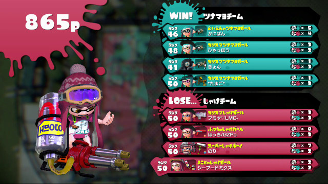 | Custom Hydra Splatling | 50 | 2 / 2 = | 1.00 | 50.0% | |