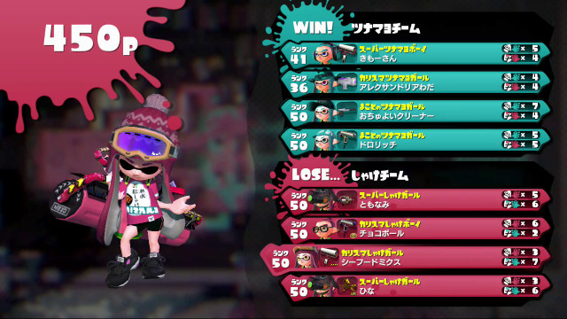 | Splattershot Jr. | 36 | 4 / 4 = | 1.00 | 50.0% | |