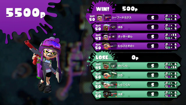 | Heavy Splatling Deco | 50 | S | 7 / 7 = | 1.00 | 50.0% | |