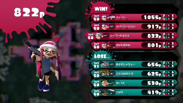| Splattershot Jr. | 50 | 1,055 | 5 / 3 > | 1.67 | 62.5% | |