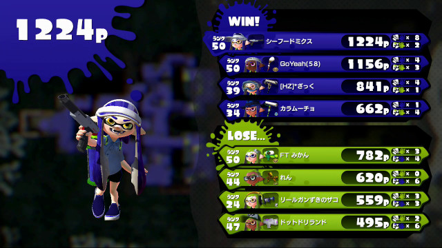 | Wasabi Splattershot | 50 | 782 | 3 / 4 < | 0.75 | 42.9% | |