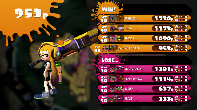 | Splattershot Jr. | 40 | 1,173 | 7 / 2 > | 3.50 | 77.8% | |