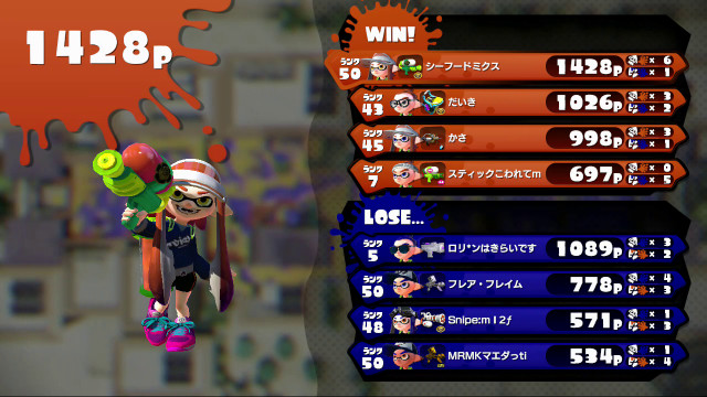 | Splattershot Jr. | 5 | 1,089 | 3 / 2 > | 1.50 | 60.0% | |