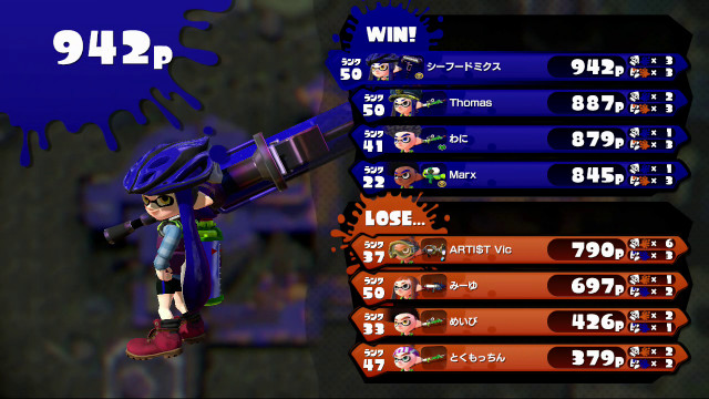 | Splattershot Pro | 50 | 697 | 1 / 2 < | 0.50 | 33.3% | |