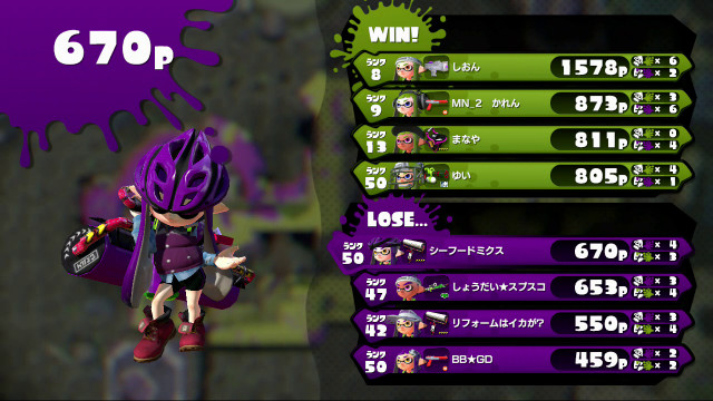 | Splattershot Jr. | 8 | 1,578 | 6 / 2 > | 3.00 | 75.0% | |