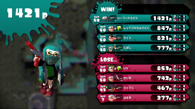 | Splattershot | 50 | 847 | 5 / 3 > | 1.67 | 62.5% | |