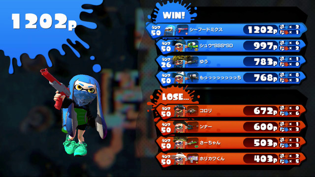 | Wasabi Splattershot | 50 | 997 | 6 / 2 > | 3.00 | 75.0% | |