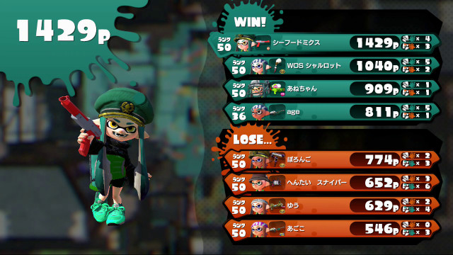 | Tentatek Splattershot | 50 | 909 | 1 / 1 = | 1.00 | 50.0% | |