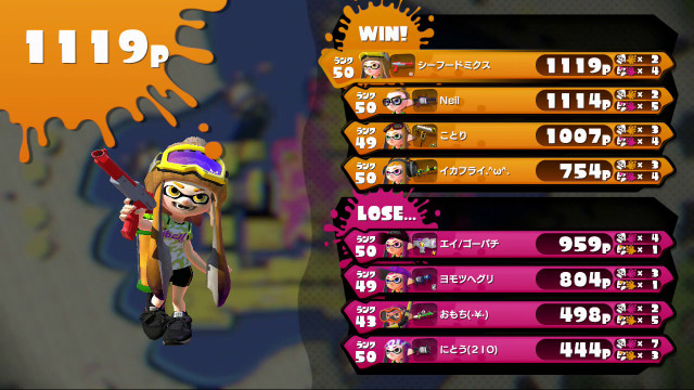 | Custom Splattershot Jr. | 50 | 959 | 4 / 1 > | 4.00 | 80.0% | |