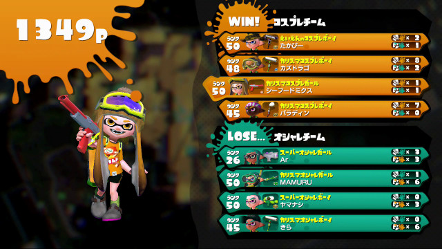 | Splattershot Jr. | 26 | 3 / 3 = | 1.00 | 50.0% | |