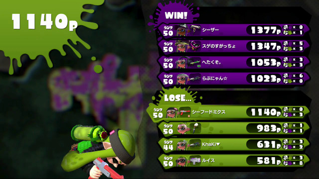 | Splattershot Jr. | 50 | 581 | 3 / 8 < | 0.38 | 27.3% | |