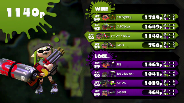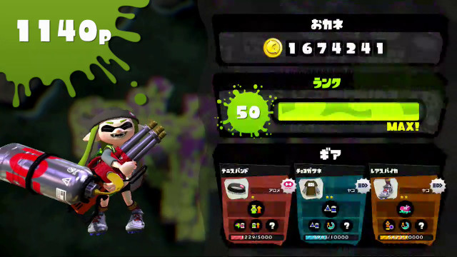 | Hydra Splatling | 50 | 1,140 | 1 / 2 < | 0.50 | 33.3% | |
