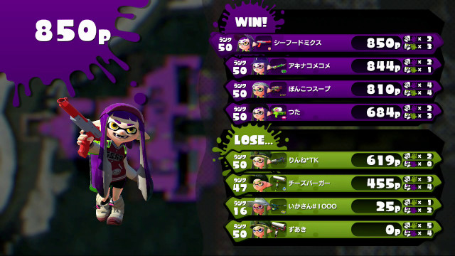 | Tentatek Splattershot | 50 | 684 | 2 / 3 < | 0.67 | 40.0% | |