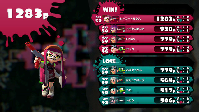 | Heavy Splatling | 50 | 779 | 3 / 3 = | 1.00 | 50.0% | |