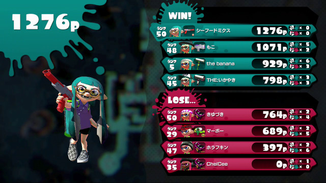 | Splattershot Jr. | 48 | 1,071 | 5 / 2 > | 2.50 | 71.4% | |
