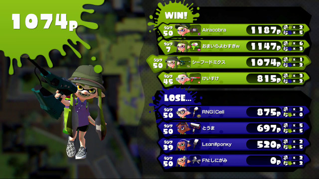 | Tentatek Splattershot | 7 | 1,147 | 6 / 3 > | 2.00 | 66.7% | |