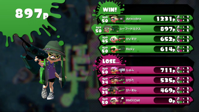 | Splattershot Jr. | 50 | 711 | 3 / 4 < | 0.75 | 42.9% | |