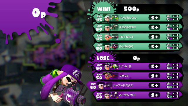 | Wasabi Splattershot | 45 | S+ | 4 / 1 > | 4.00 | 80.0% | |