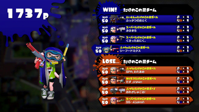 | Splattershot Jr. | 50 | 4 / 3 > | 1.33 | 57.1% | |