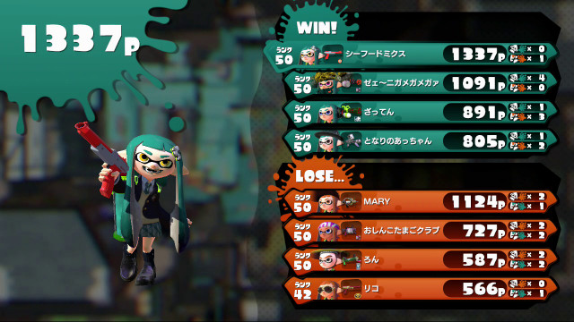 | Mode | Turf War | ||||||||||||||||||