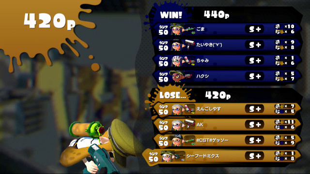 | Custom Hydra Splatling | 50 | S+ | 7 / 5 > | 1.40 | 58.3% | |