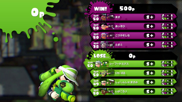 | Wasabi Splattershot | 50 | S+ | 1 / 1 = | 1.00 | 50.0% | |