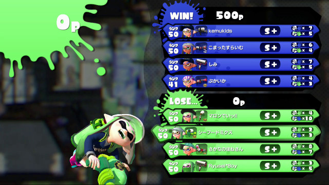 | Wasabi Splattershot | 50 | S+ | 2 / 3 < | 0.67 | 40.0% | |