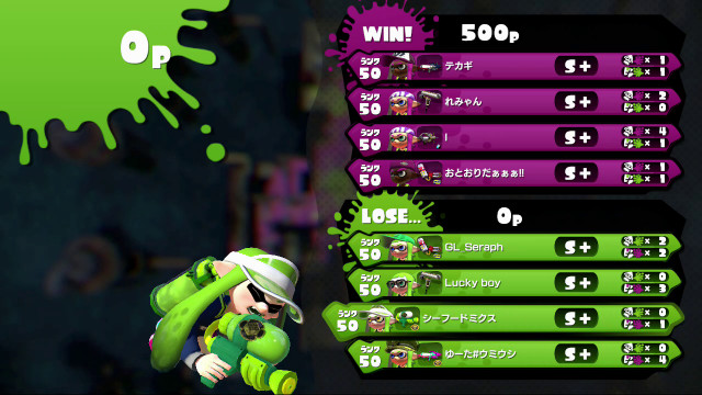 | Custom Hydra Splatling | 50 | S+ | 2 / 2 = | 1.00 | 50.0% | |