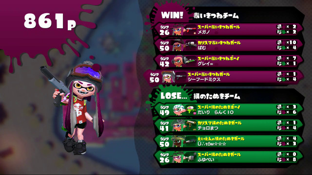 | Tentatek Splattershot | 49 | 3 / 6 < | 0.50 | 33.3% | |