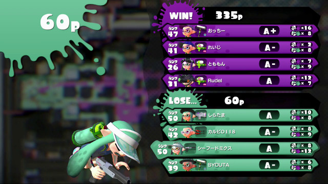| Splattershot Jr. | 50 | A | 10 / 8 > | 1.25 | 55.6% | |