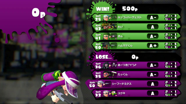 | Splat Roller | 35 | A- | 1 / 2 < | 0.50 | 33.3% | |