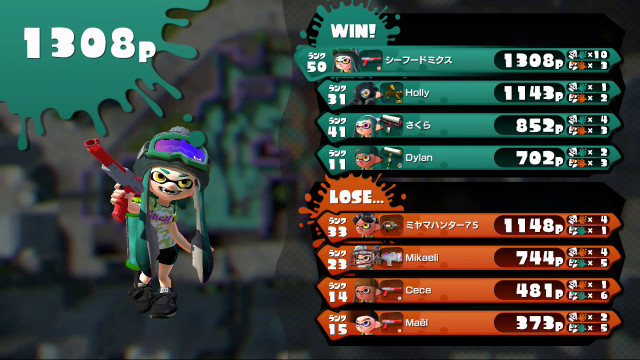 | Splattershot Jr. | 23 | 744 | 4 / 5 < | 0.80 | 44.4% | |