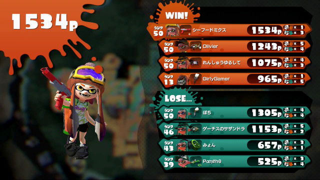 | Mode | Turf War | ||||||||||||||||||