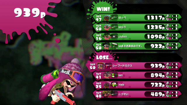 | Mini Splatling | 41 | 894 | 3 / 4 < | 0.75 | 42.9% | |