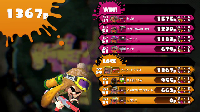 | Tentatek Splattershot | 18 | 955 | 1 / 2 < | 0.50 | 33.3% | |