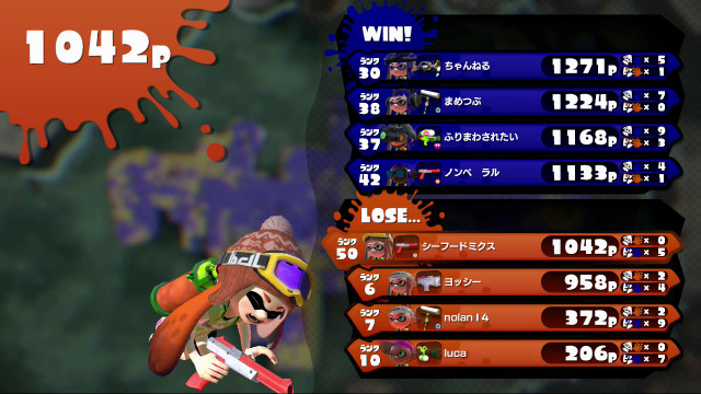 | Splattershot Jr. | 6 | 958 | 2 / 4 < | 0.50 | 33.3% | |