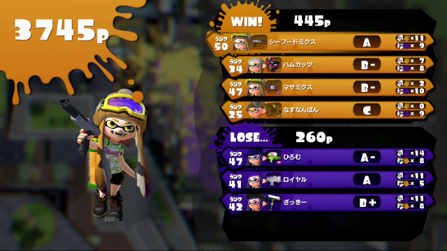 | Splattershot Jr. | 41 | A | 11 / 5 > | 2.20 | 68.8% | |