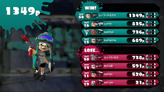 | Splattershot Jr. | 16 | 835 | 3 / 5 < | 0.60 | 37.5% | |