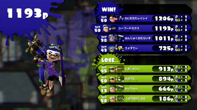 | Tentatek Splattershot | 43 | 725 | 1 / 2 < | 0.50 | 33.3% | |