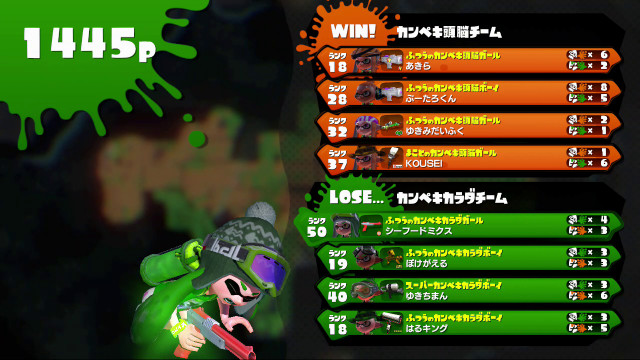 | Splattershot Jr. | 28 | 8 / 5 > | 1.60 | 61.5% | |