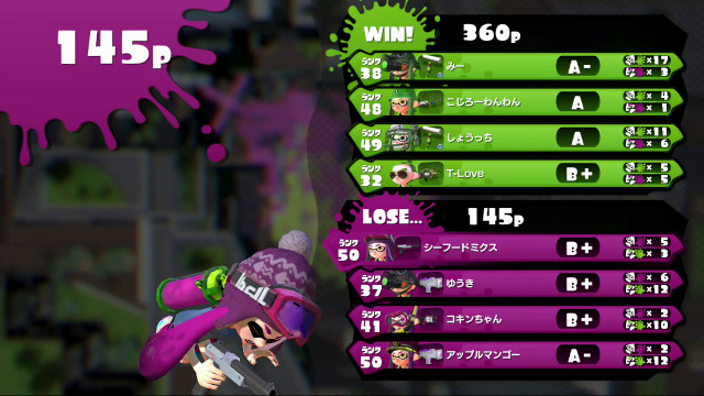 | Splattershot Jr. | 37 | B+ | 6 / 12 < | 0.50 | 33.3% | |