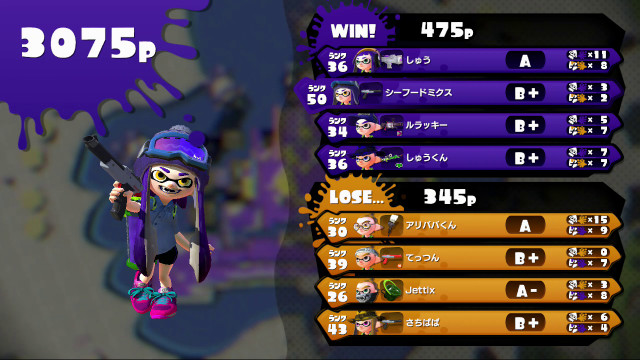 | Splattershot Jr. | 36 | A | 11 / 8 > | 1.38 | 57.9% | |