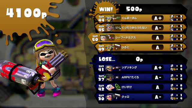 | Hydra Splatling | 50 | A | 2 / 0 > | 99.99 | 100.0% | |