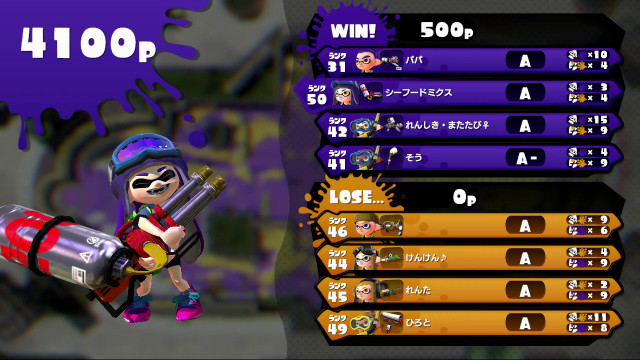 | Hydra Splatling | 50 | A | 3 / 4 < | 0.75 | 42.9% | |