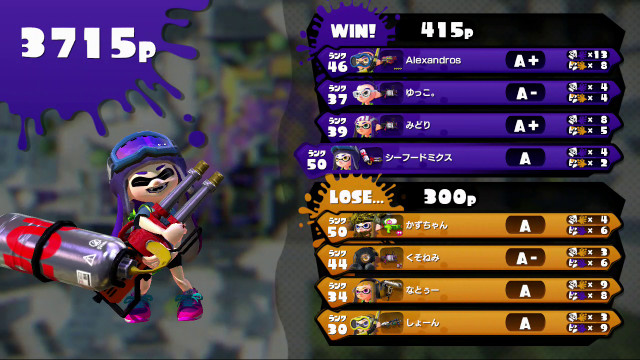 | Hydra Splatling | 50 | A | 4 / 2 > | 2.00 | 66.7% | |